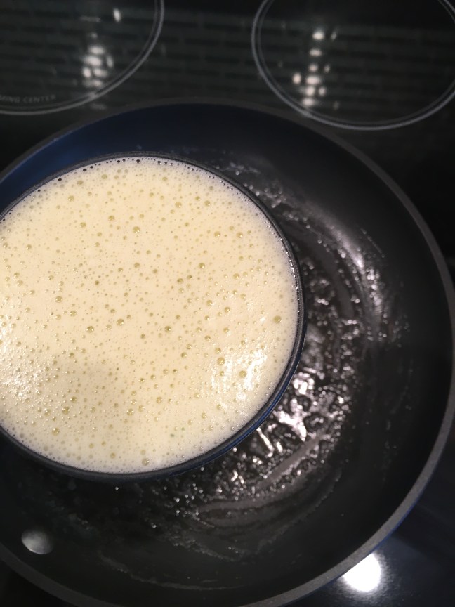 One 4.5-ounce ladle per omelet into a hot, buttered pan.