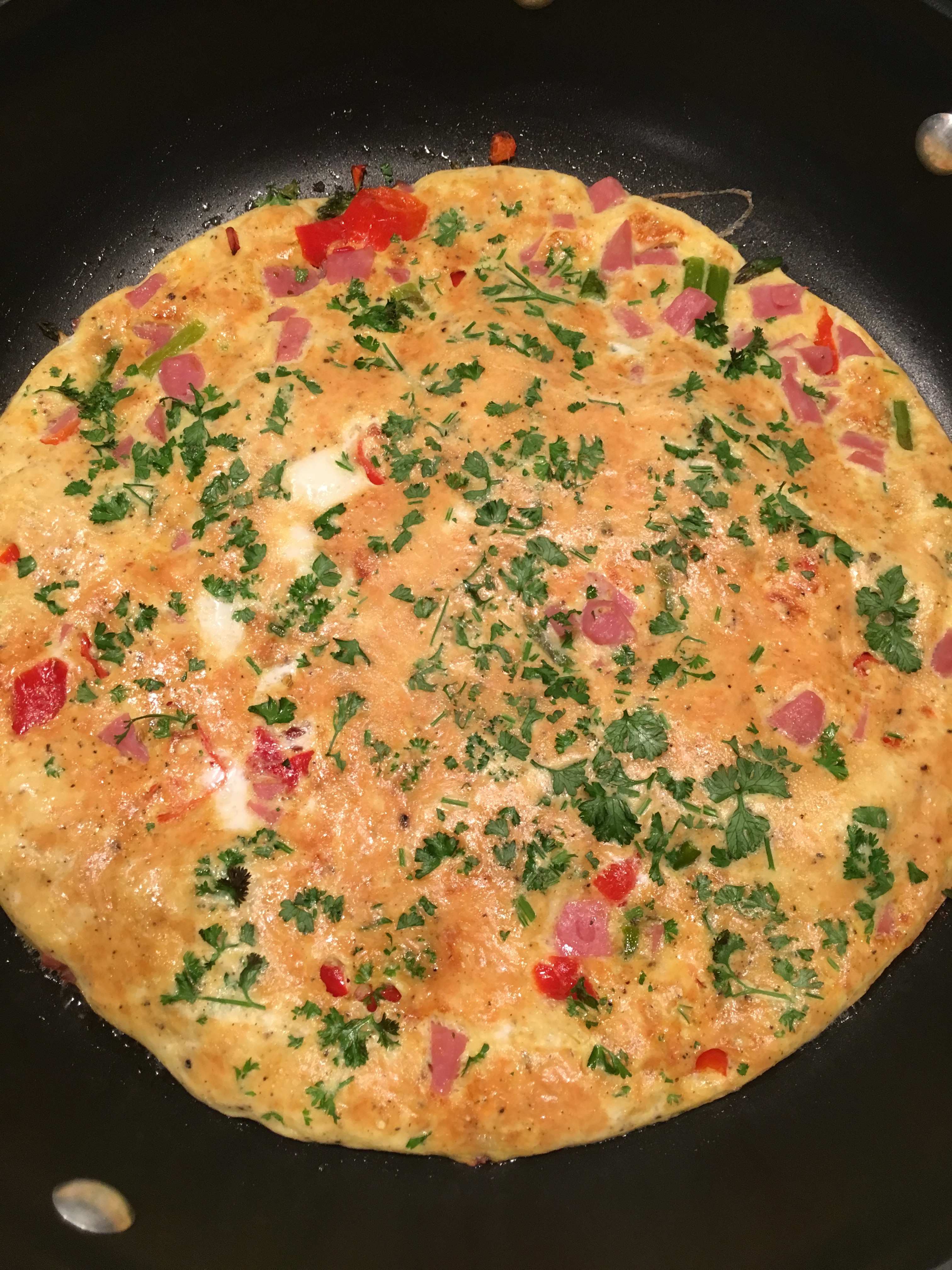 Frittata after cooking under the broiler for 2 minutes.
