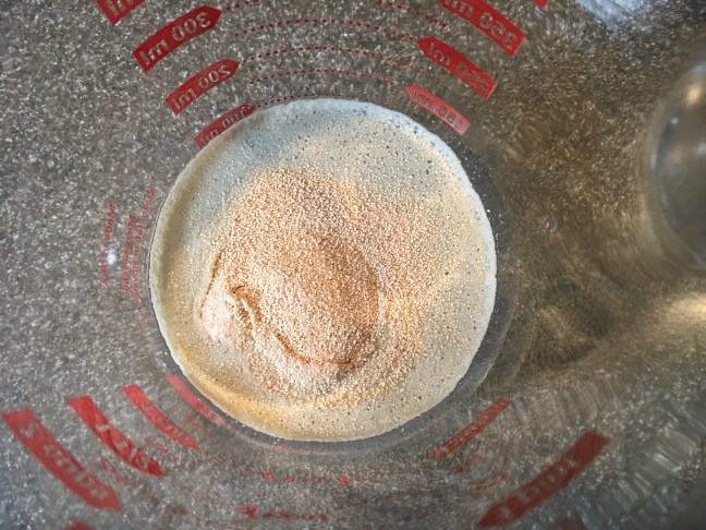 Yeast added to warm water.