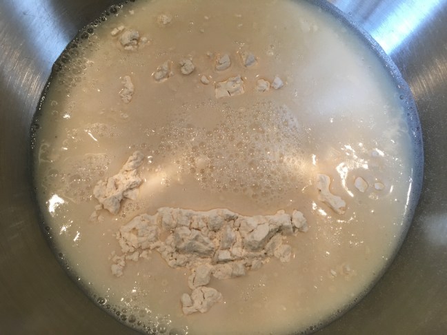 Wet ingredients added to flour.