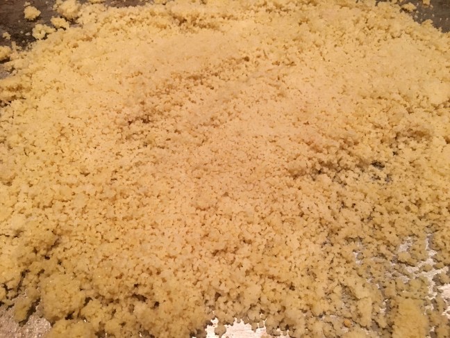 Couscous, sprayed with non-stick spray, to be massaged into couscous for 3 minutes.