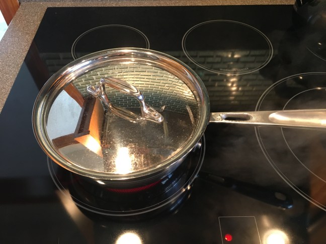 Lid placed on saucier for 3 minutes.