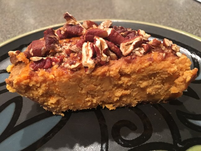 A slice of sweet potato pie.