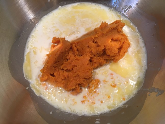 Milk, light brown sugar, melted butter, orange zest, and mashed sweet potato.