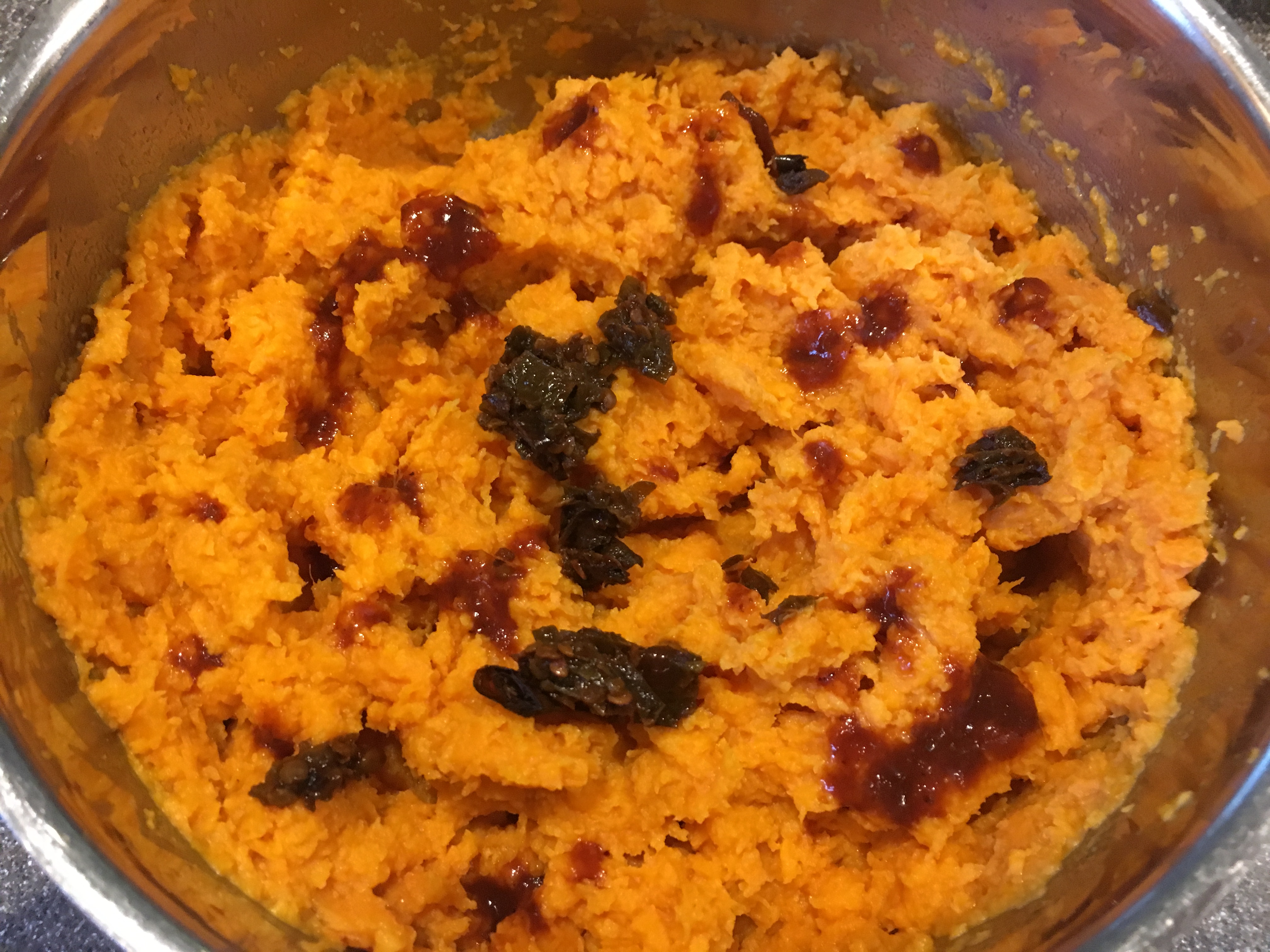 Chopped chipotle and adobo sauce added to mashed sweet potatoes.