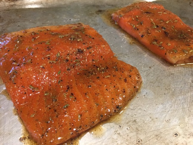 Salmon, brushed with pomade and left to sit for 30 minutes.