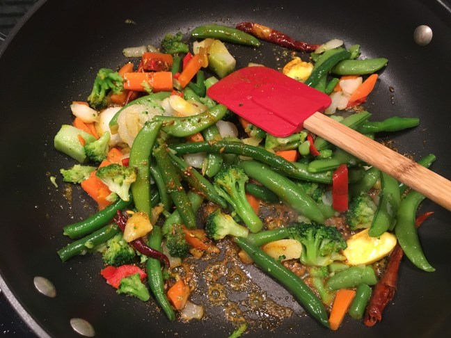Thawed frozen veggies, stirred in.