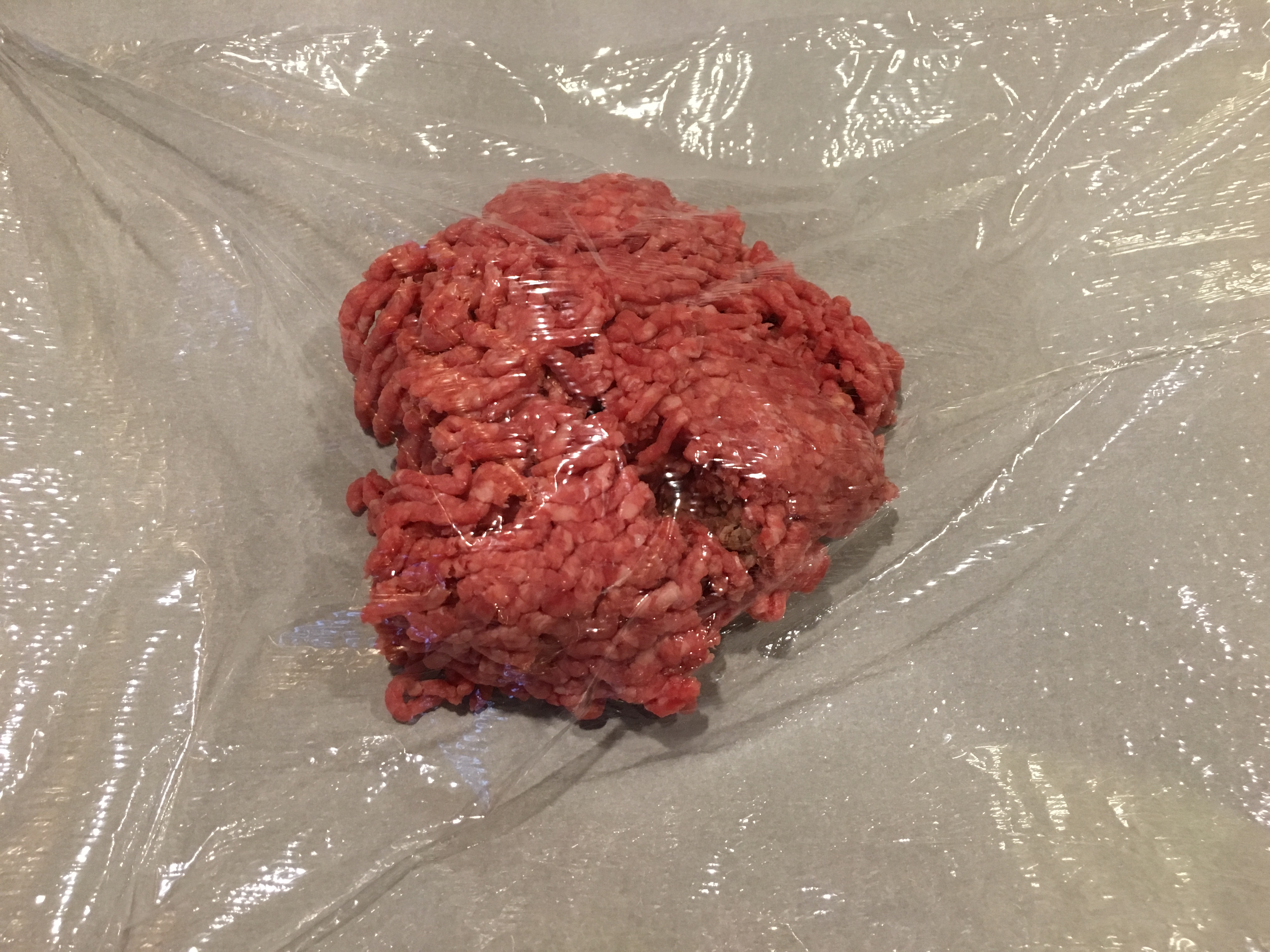 Plastic wrap placed on top of meat.