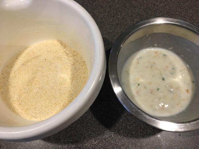 Dry ingredients on the left and wet ingredients on the right, waiting to be combined once ready to cook.