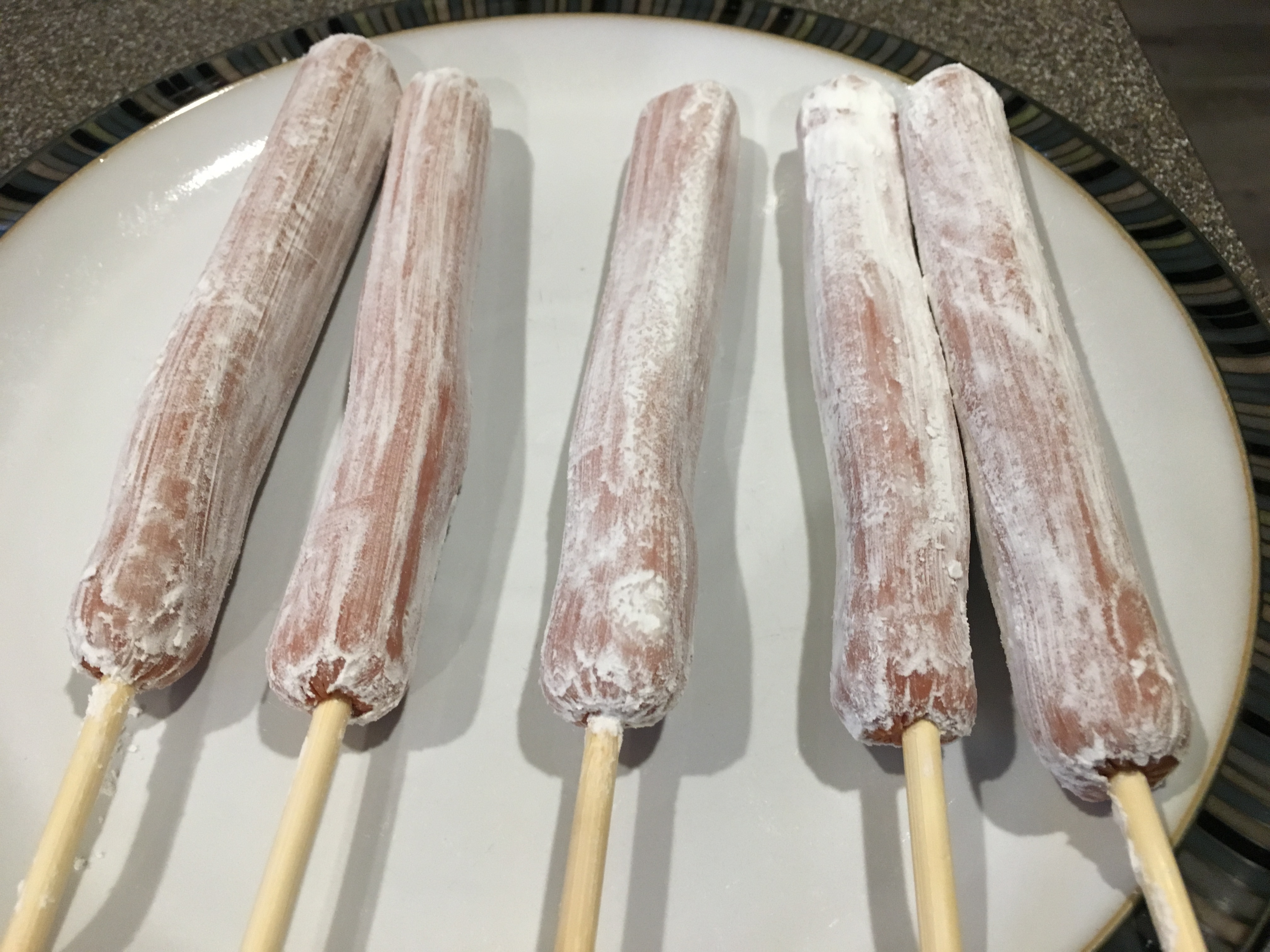 Cornstarch-coated hot dogs.