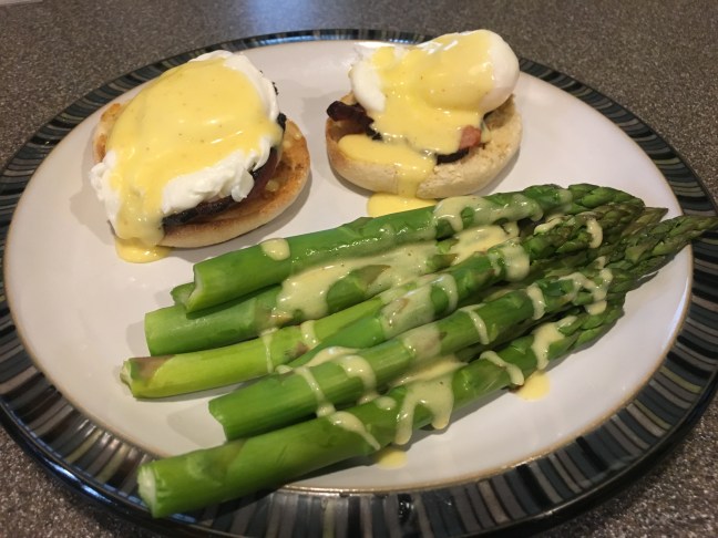 Alton’s Hollandaise, served over asparagus and Eggs Benedict.