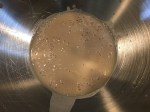 In the episode Alton specified that you want the milk to reach 150 degrees, but I just heated it until it was pretty warm. Once warm, whisk in 2 C sifted powdered sugar until smooth.