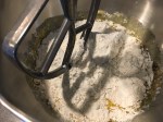 Next, add the rest of the flour, mixing at low speed until incorporated. Increase the speed and mix the dough thoroughly again.