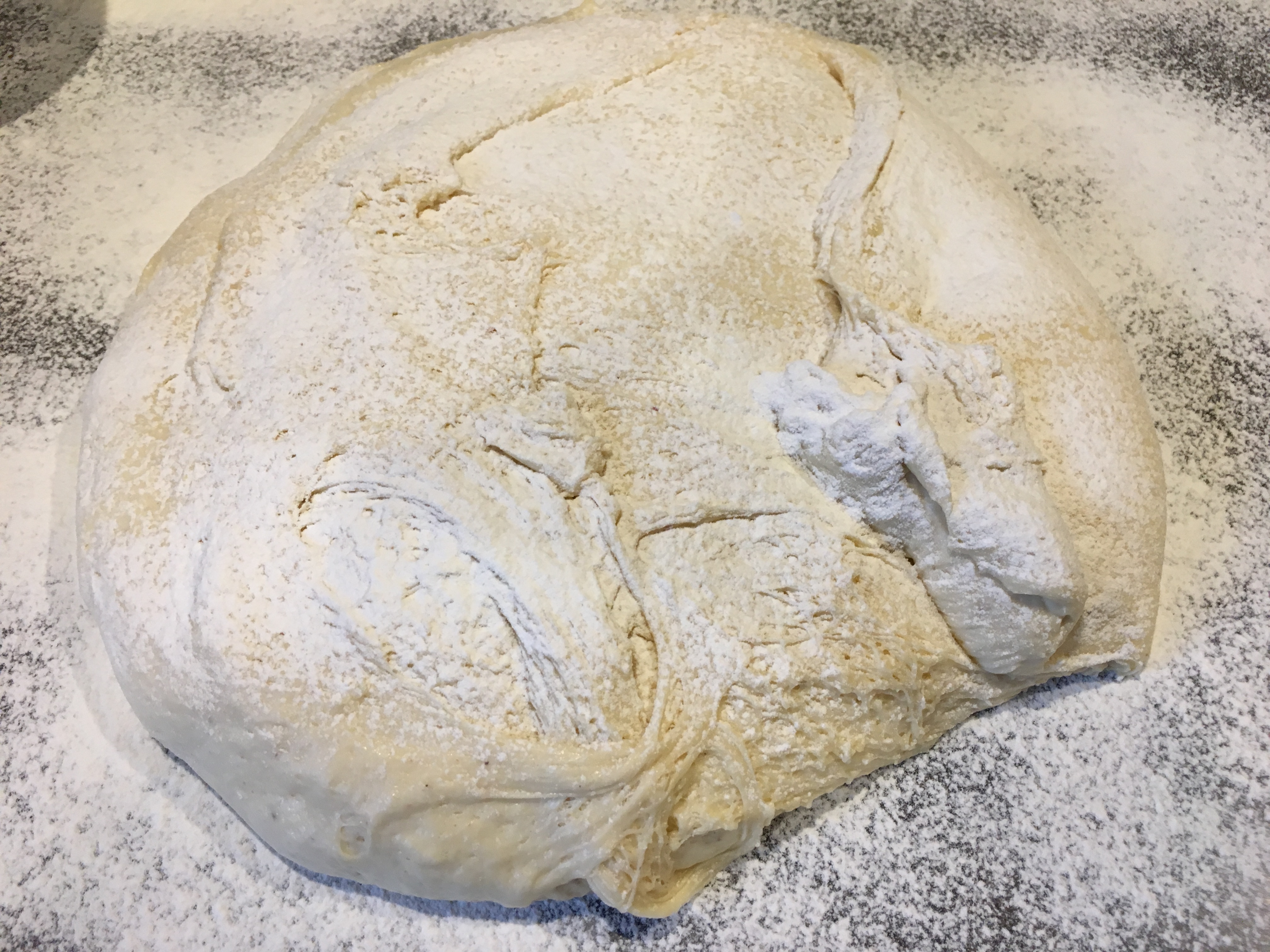 Dough turned out onto floured surface, and liberally dusted with flour.
