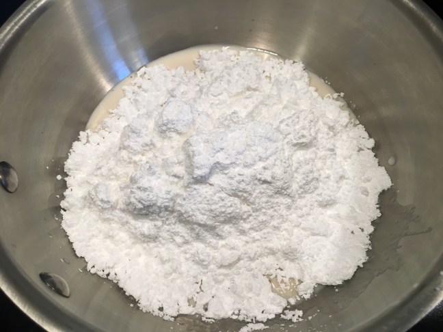 Powdered sugar added to warm milk.