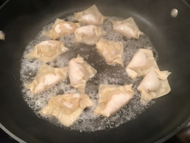 Chicken stock added to the pan.
