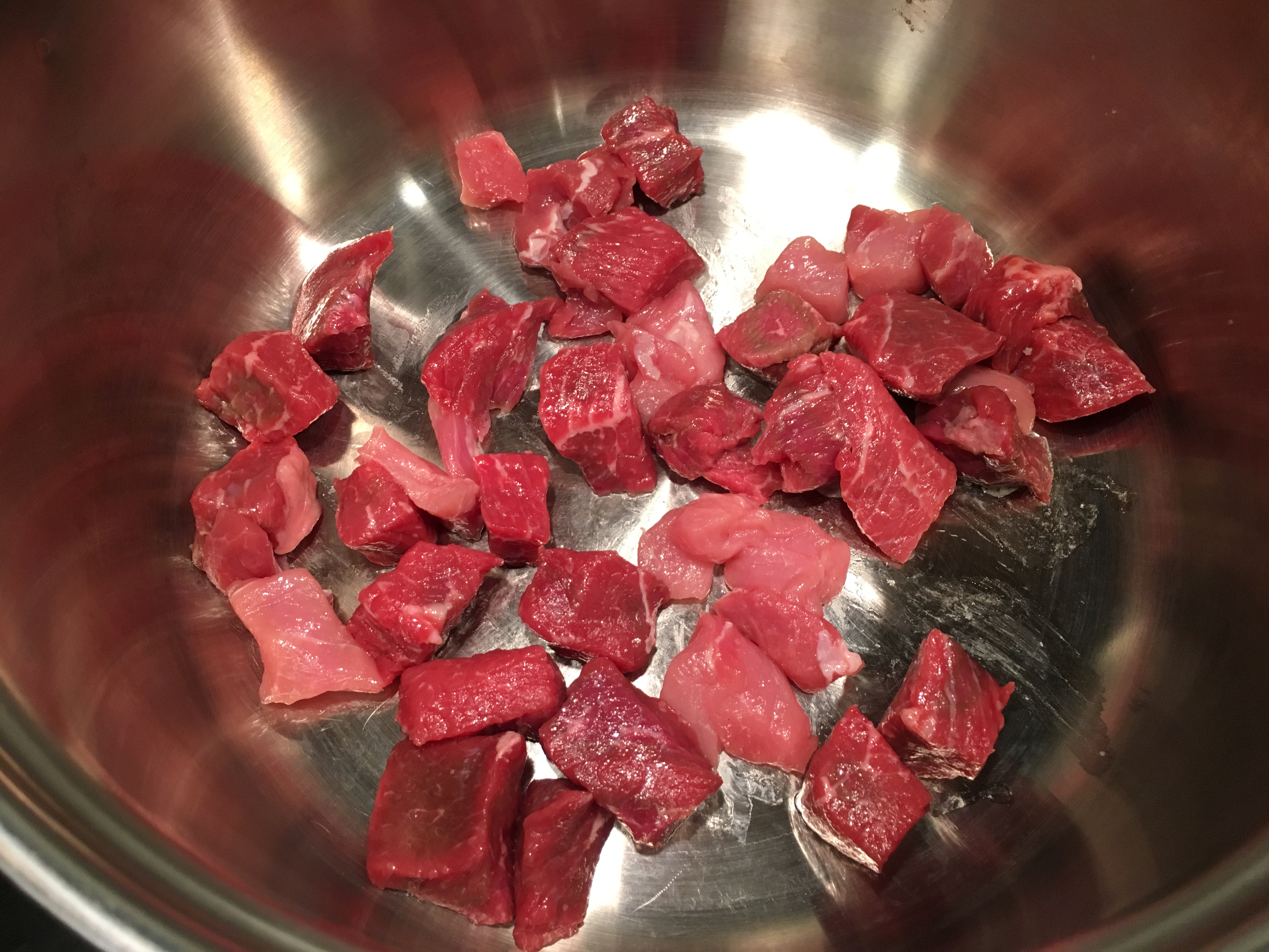 Browning stew meat in batches.
