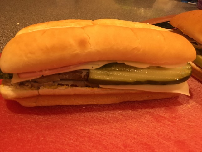 Top of hoagie placed on.