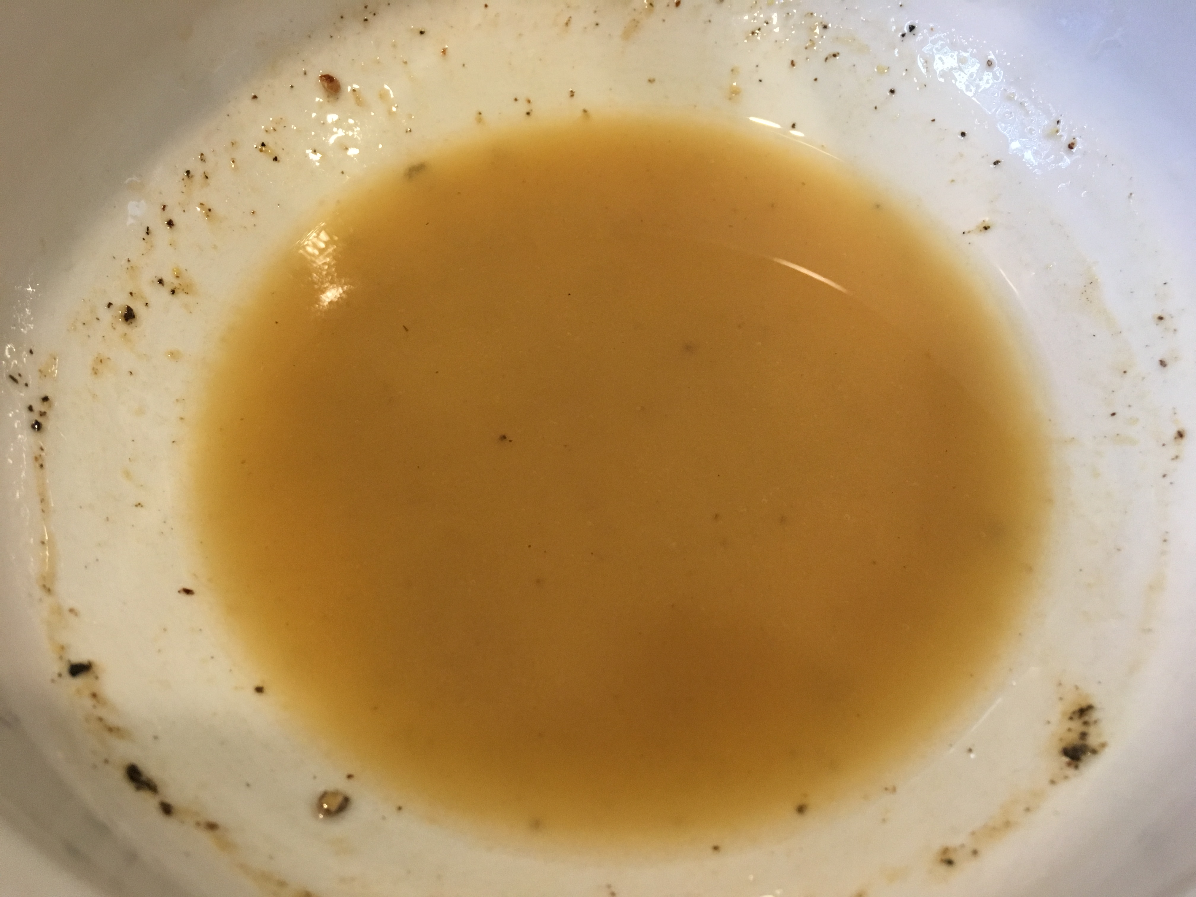 Dressing after whisking in olive oil to form an emulsion.