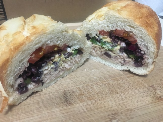 Alton’s pan bagnat. Excuse the poor lighting in this photo, as our vacation rental had horrible lighting.