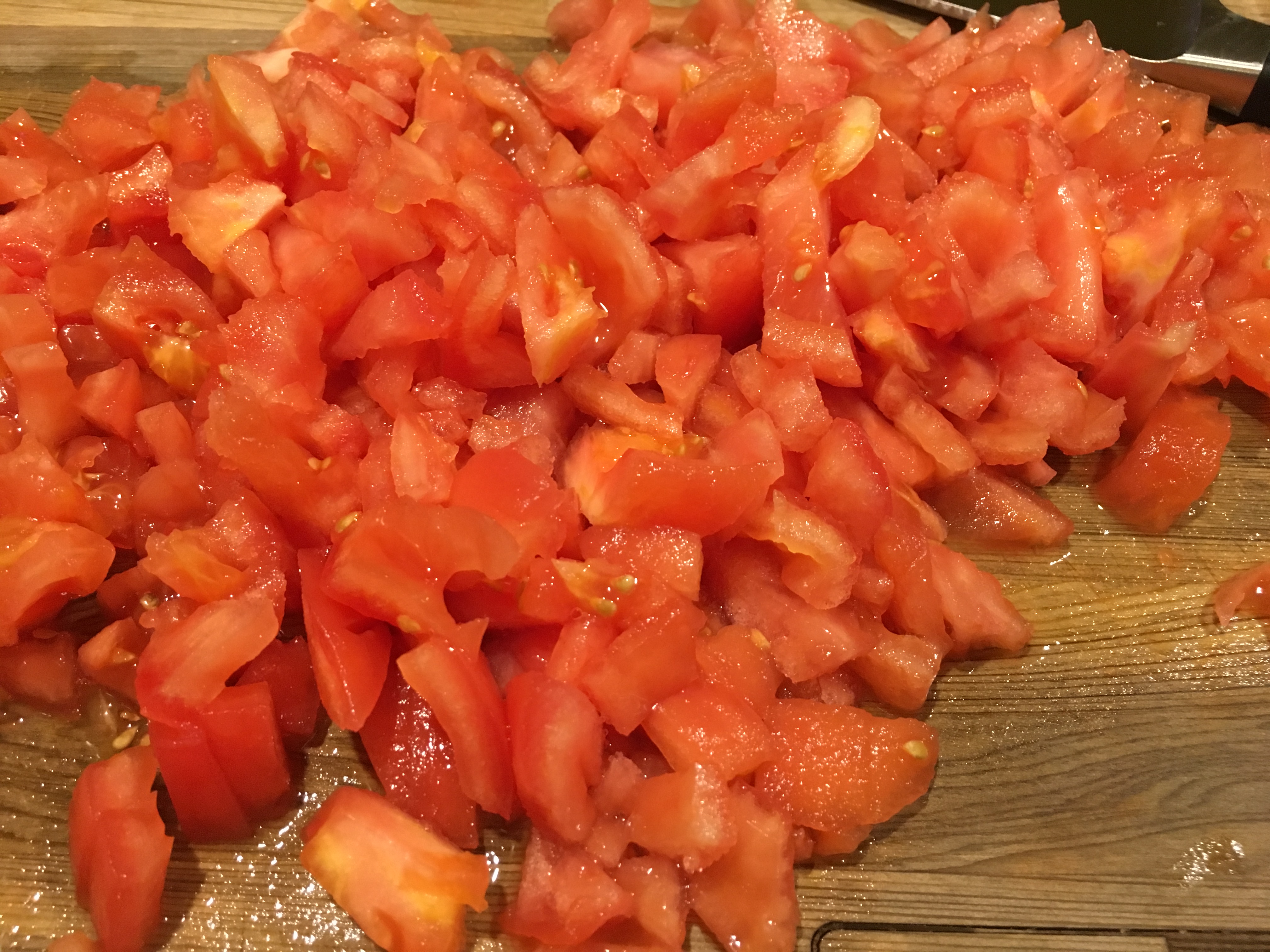Peeled, seeded, and chopped tomatoes.