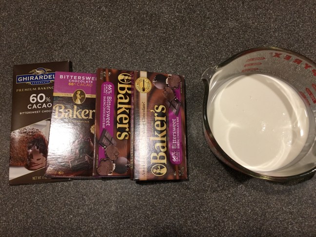Only two ingredients for this frosting: bittersweet chocolate and heavy cream.