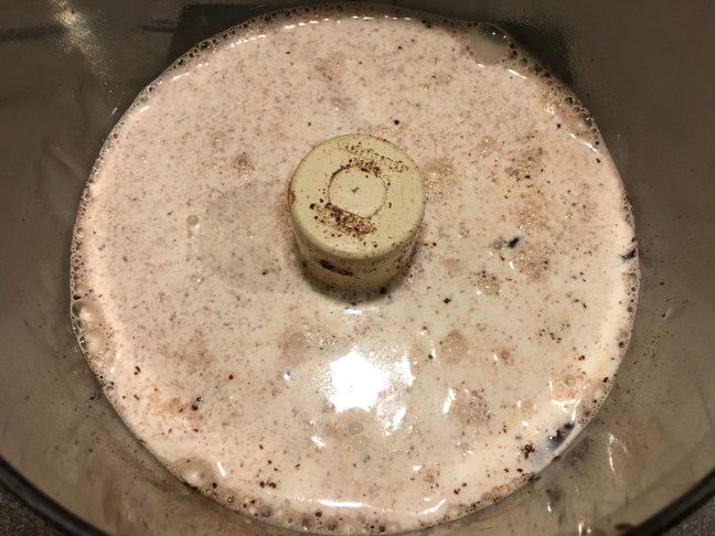 Warm cream poured over chocolate and left to sit for two minutes.