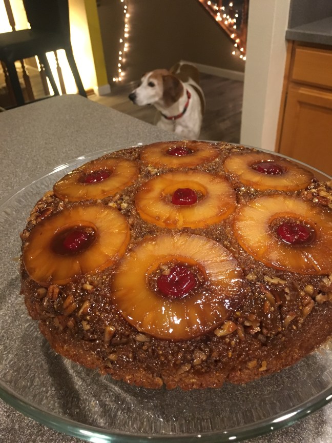Cooled cake flipped onto cake stand.
