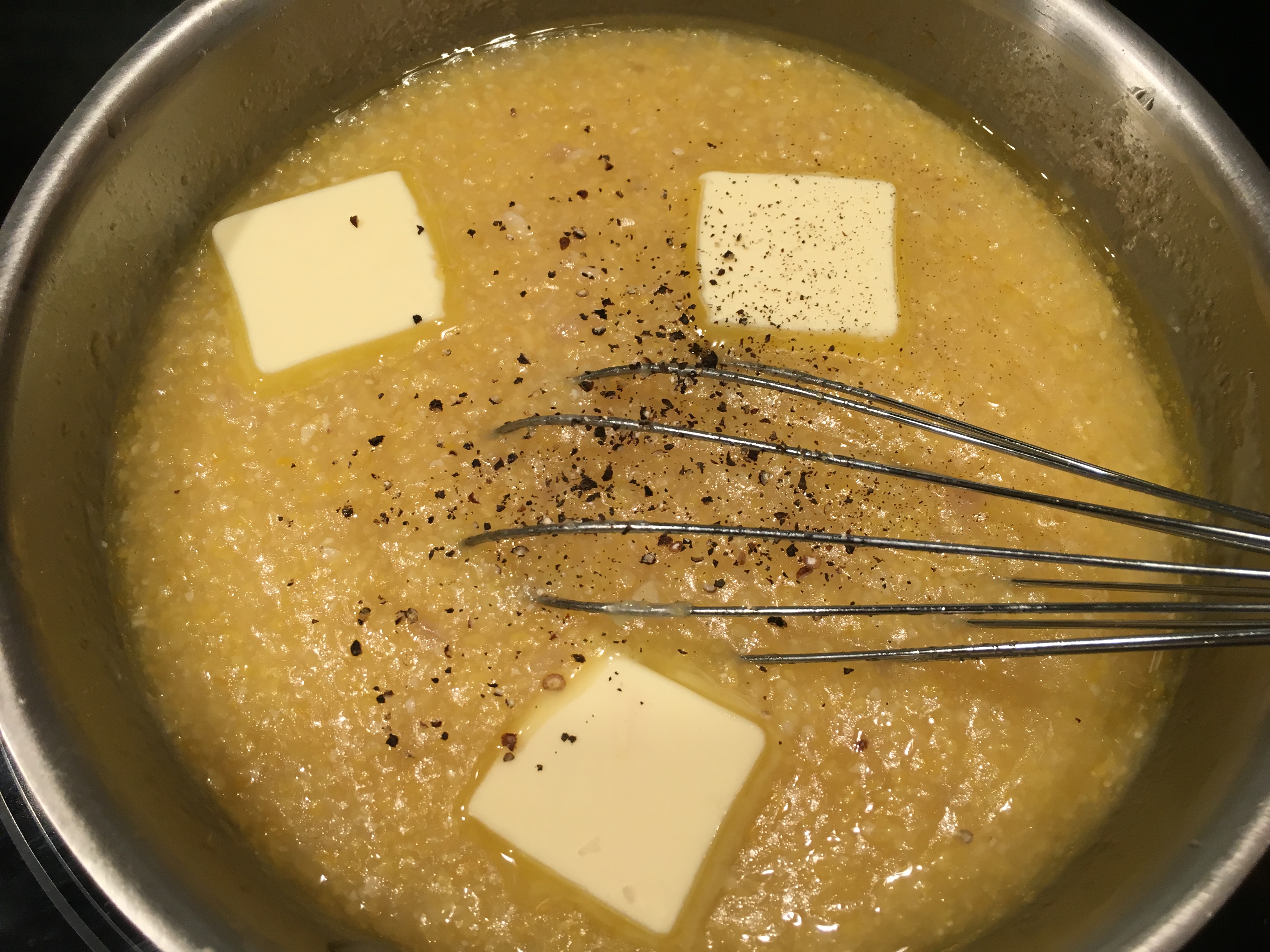 Butter and pepper added to polenta.