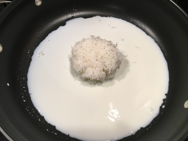 Rice and milk in large skillet over medium heat.