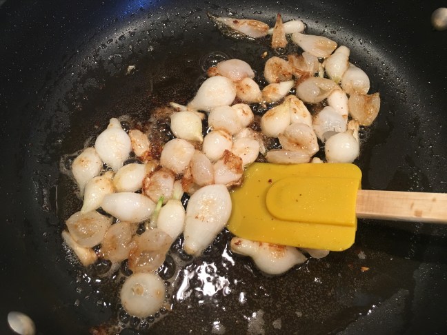 Pearl onions cooked until golden.