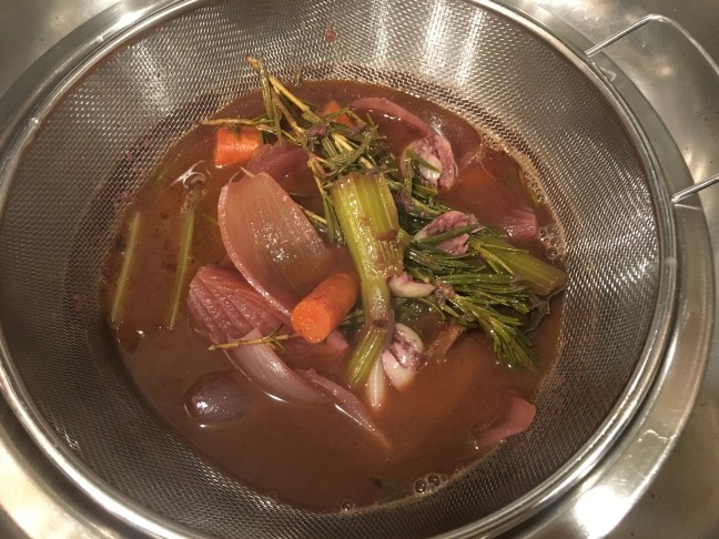 Straining the cooking liquid.
