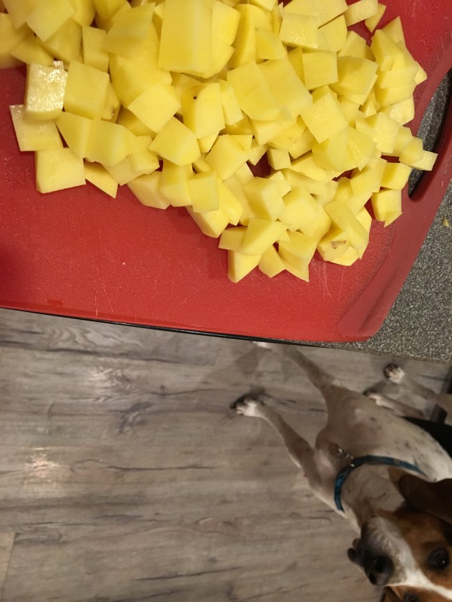 Peeled/chopped Yukon gold potatoes.