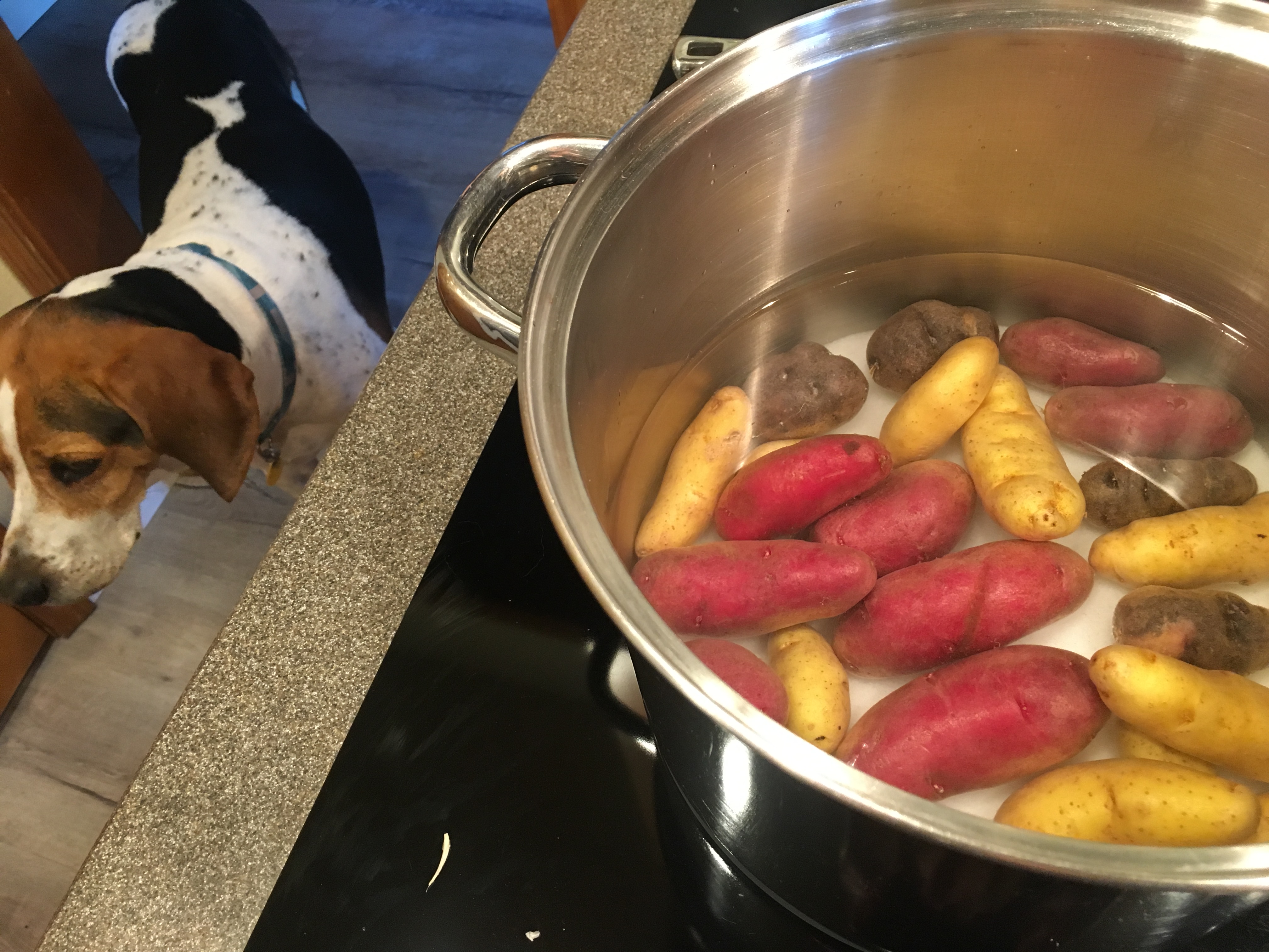 1 1/4 pounds of Kosher salt, 2 quarts of water, and 2 pounds of fingerling potatoes.