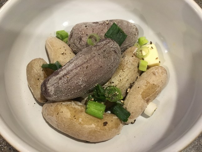 Alton’s fingerling potatoes with chives, pepper, and butter.
