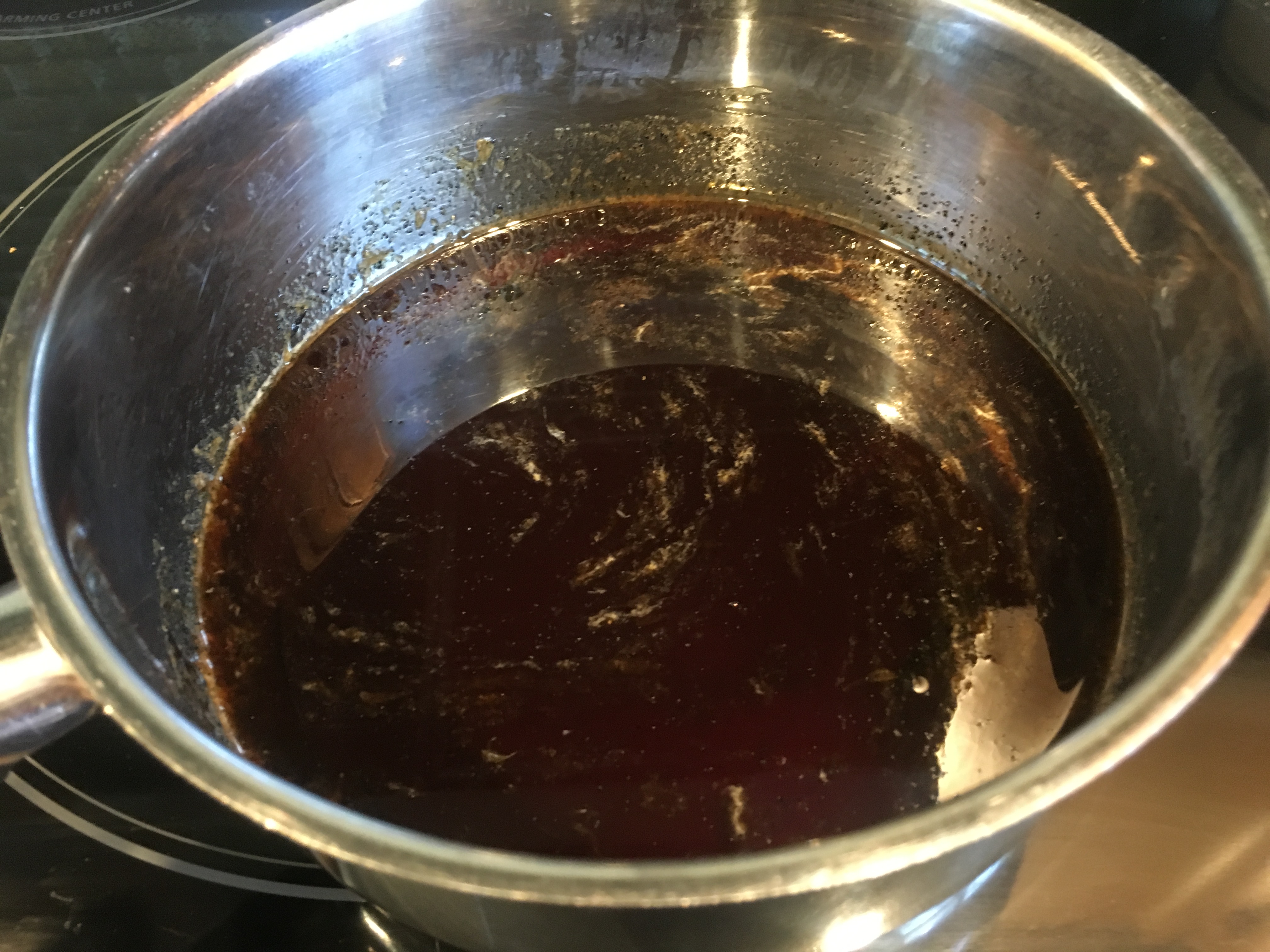Cooled syrup after removing vanilla bean.