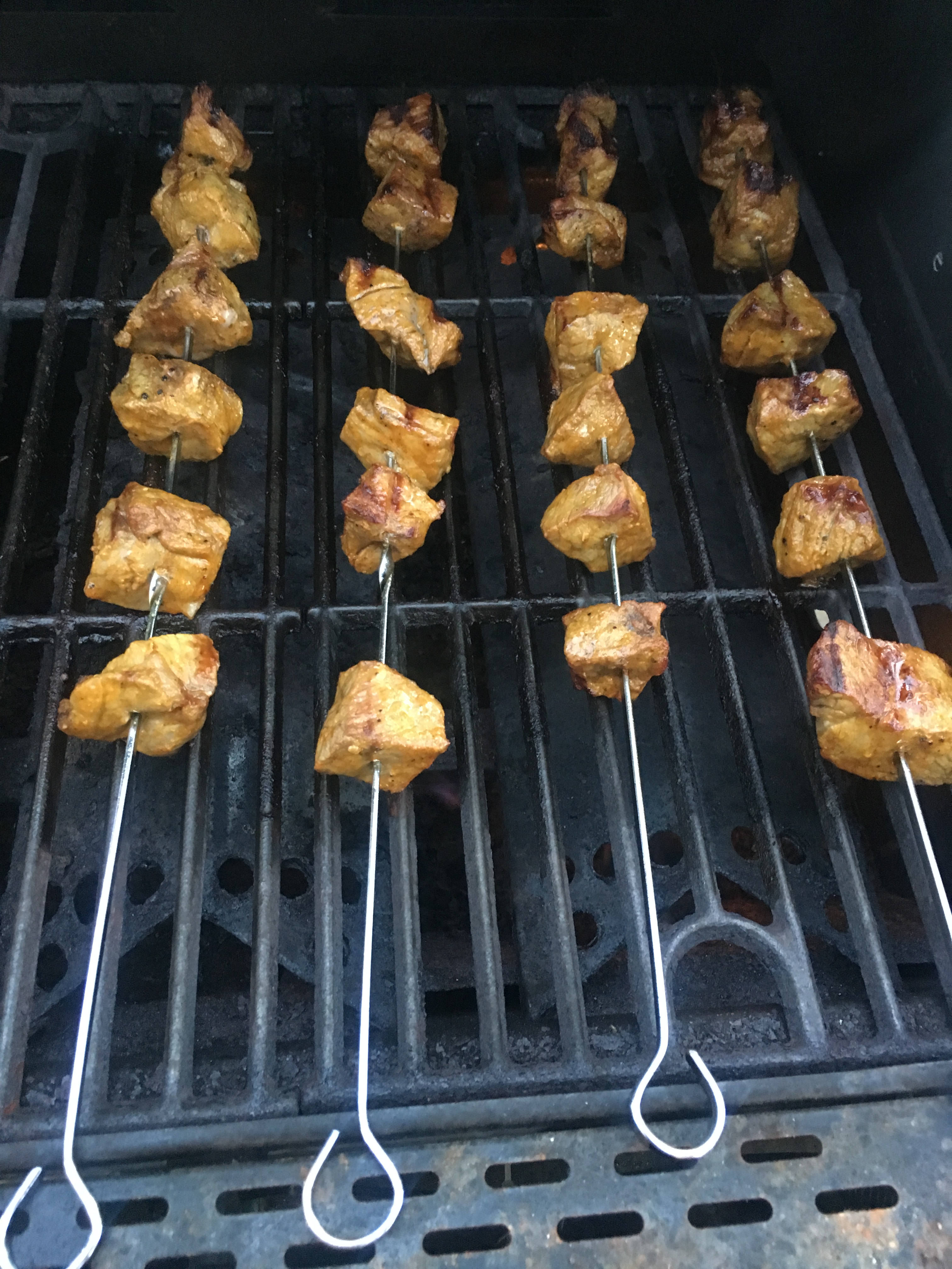 Skewers, rotating every two minutes.
