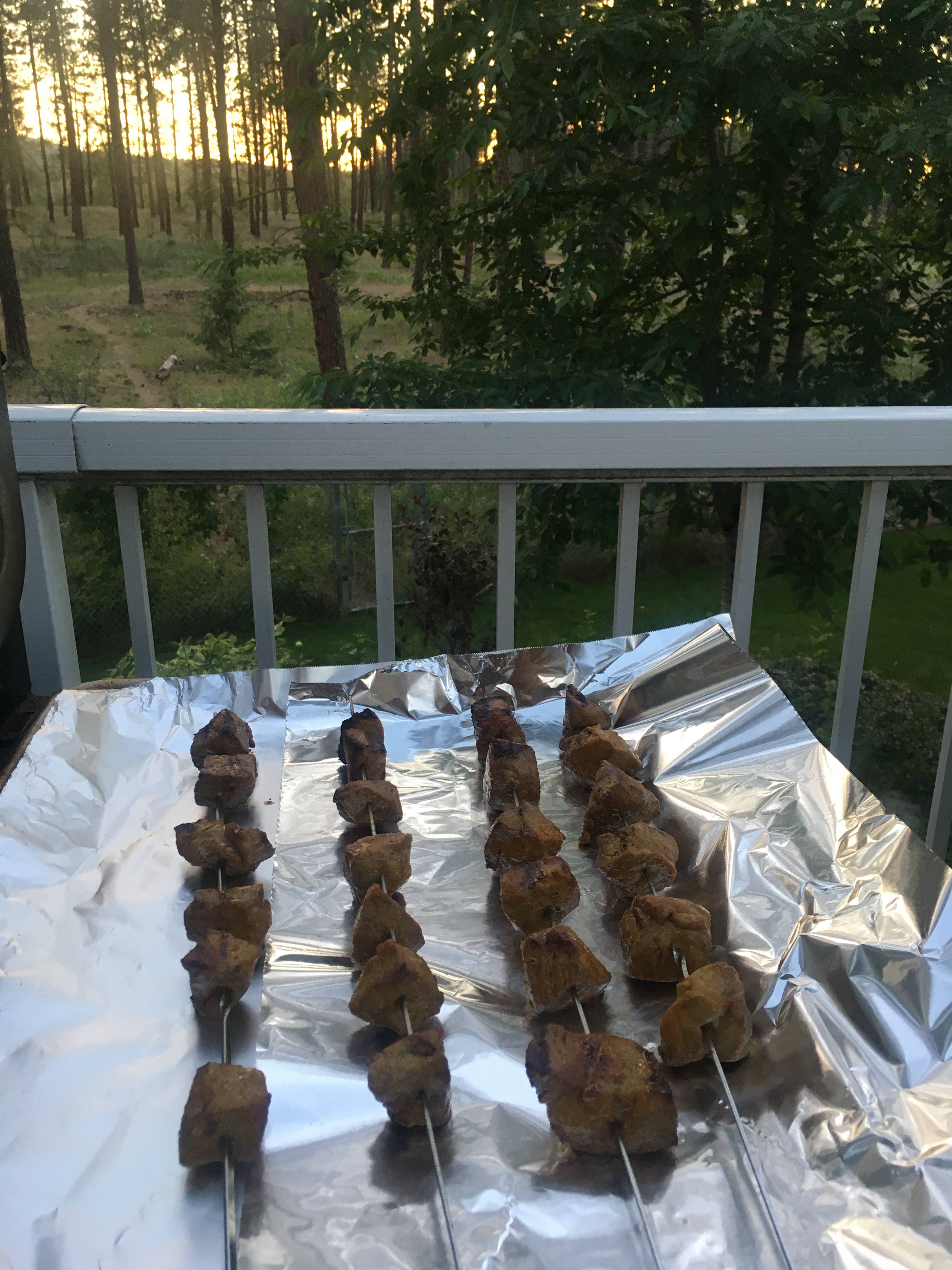 Alton’s beef skewers, cooked and ready to rest in foil.