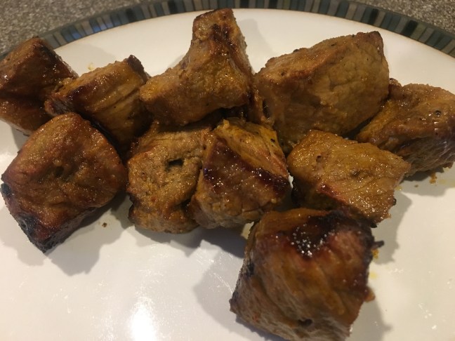 The beef from Alton’s skewers.