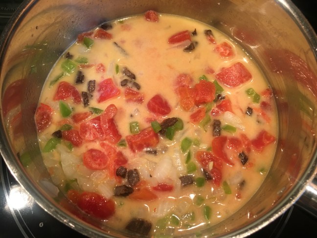 Heat increased and bringing the sauce to a boil.