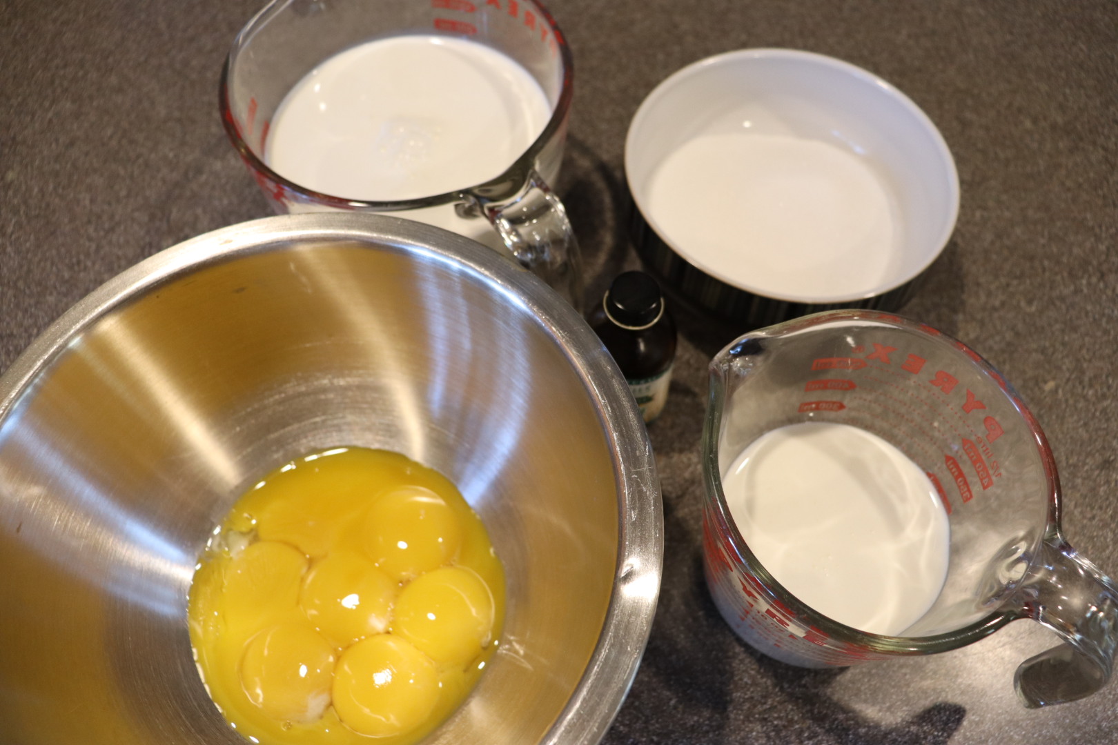 Mint chip ice cream ingredients: 1/2 and 1/2, sugar, egg yolks, mint oil, and cream.
