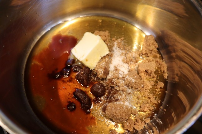 Honey, dark brown sugar, unsalted butter, vanilla, and Kosher salt.