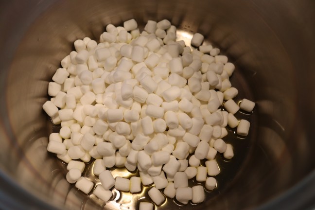 Flax seed oil, honey, and marshmallows in pot.