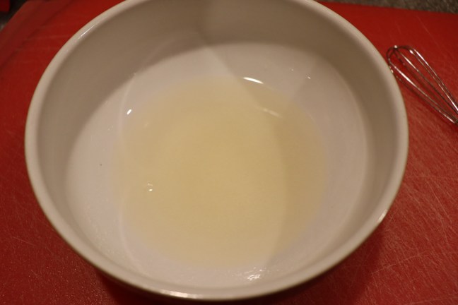 Sugar, Kosher salt, and rice vinegar microwaved until nearly dissolved.