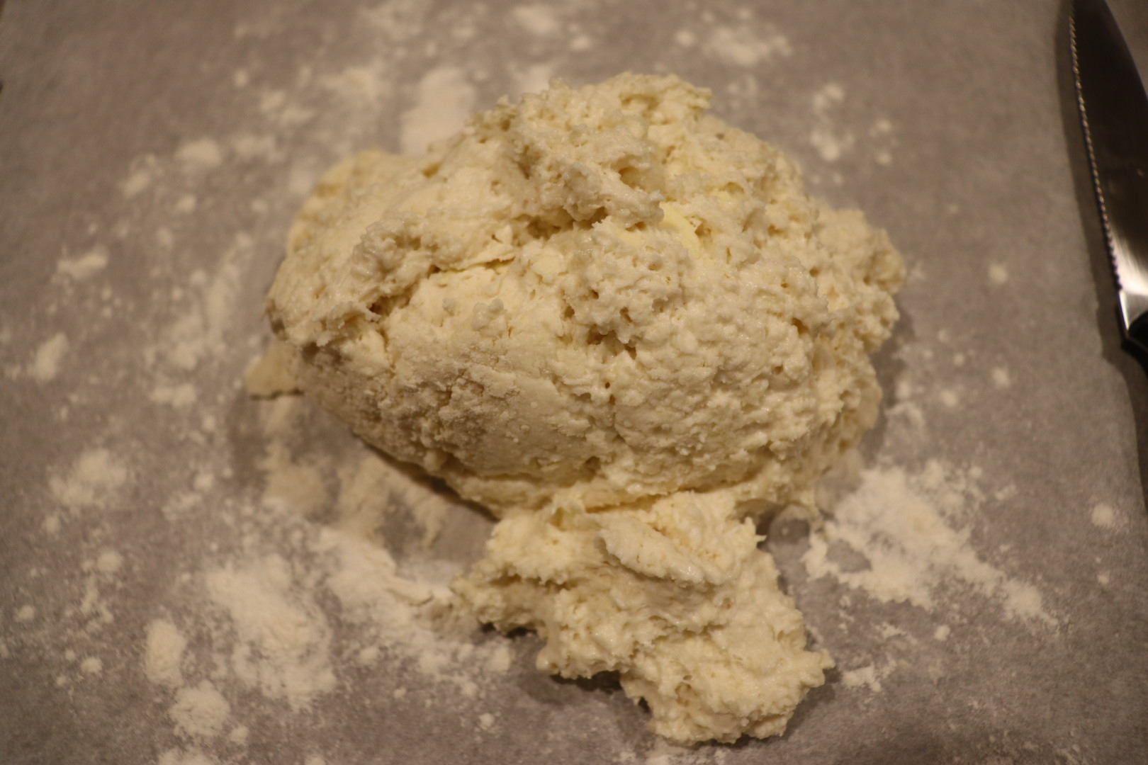 Finished dough placed on floured parchment before going into refrigerator.