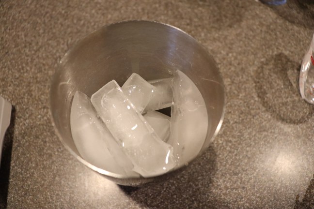 Vermouth in shaker with ice.