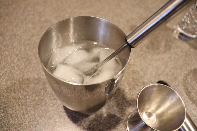 Gin added to vermouth-coated ice. Stirred, not shaken.