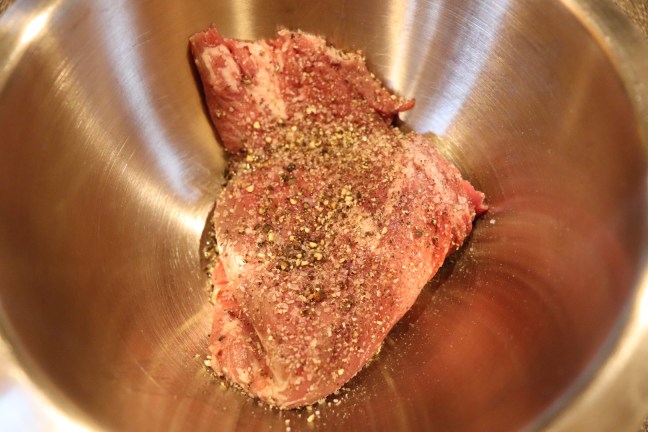 Chain placed in bowl and seasoned with olive oil, Kosher salt, and pepper.
