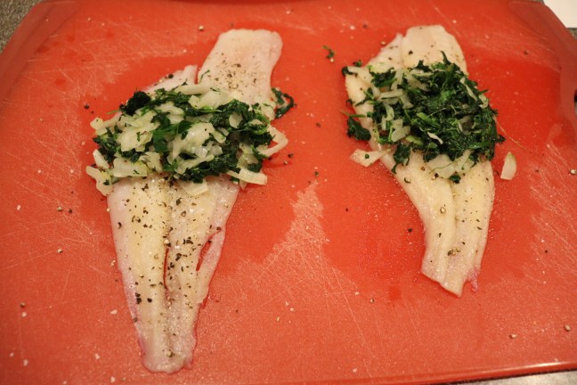 Vegetable filling placed on the center of each filet.