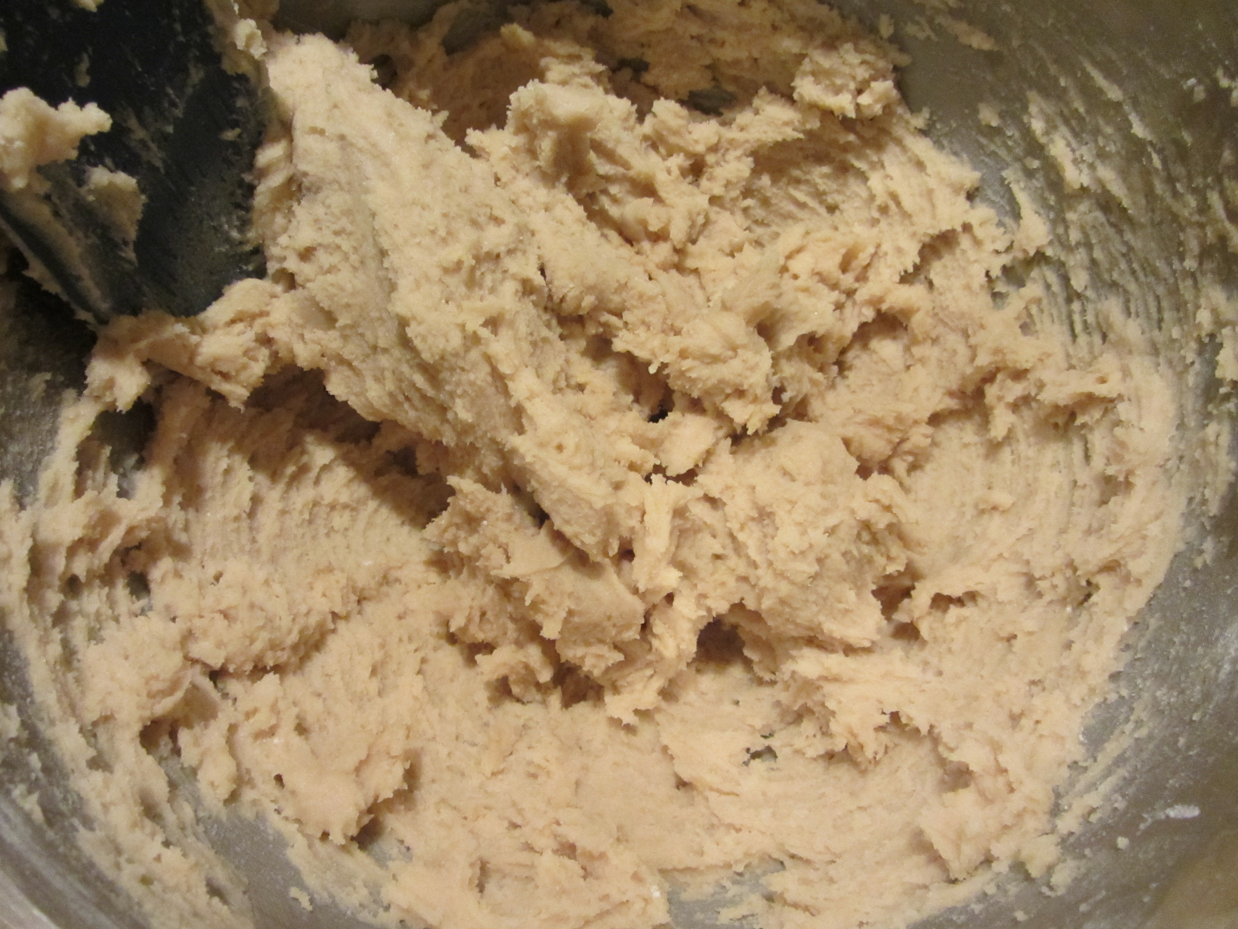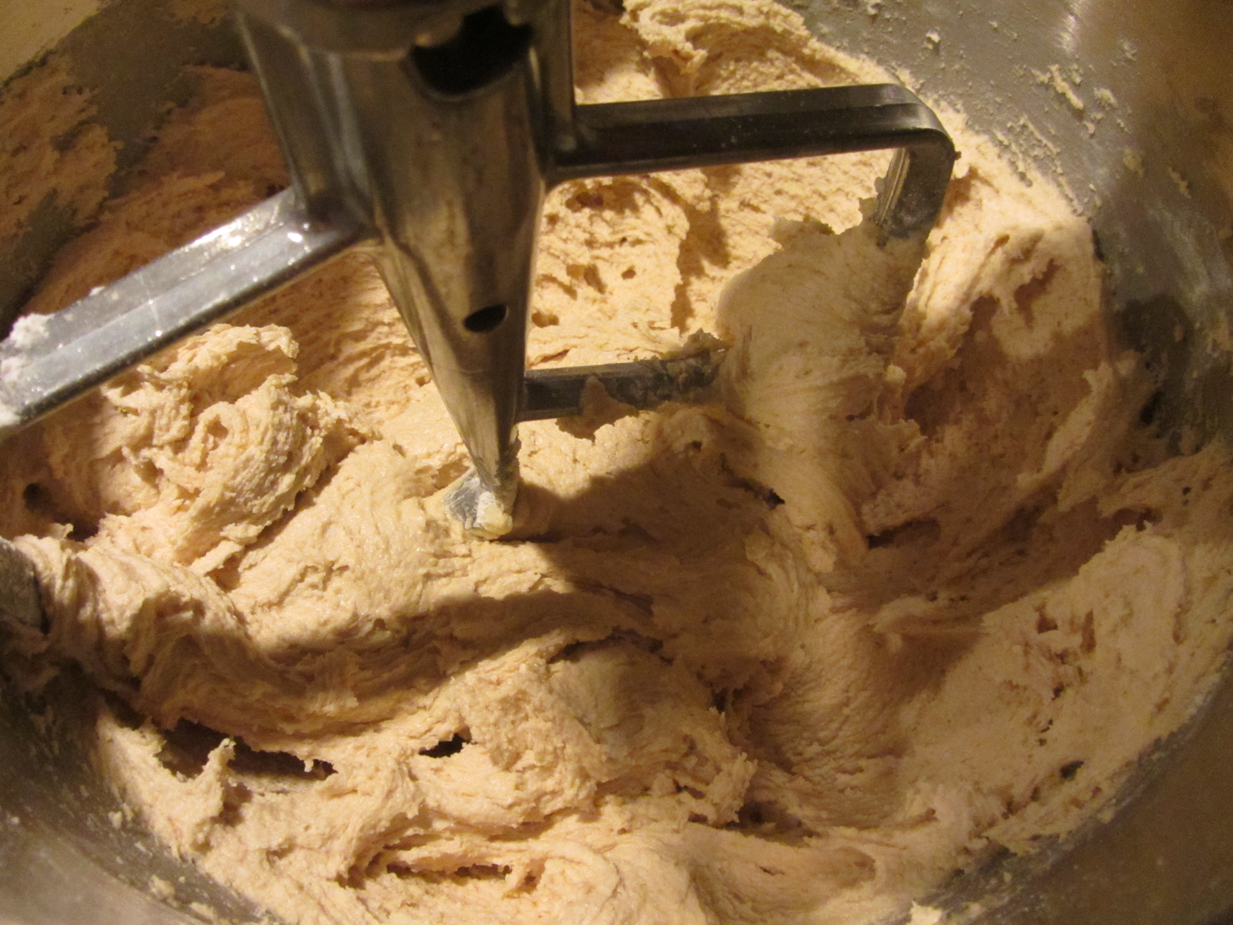 For these cookies, you begin by creaming together 1 C of butter-flavored shortening, 3/4 C of sugar, and 1 C of brown sugar (I used light brown sugar).